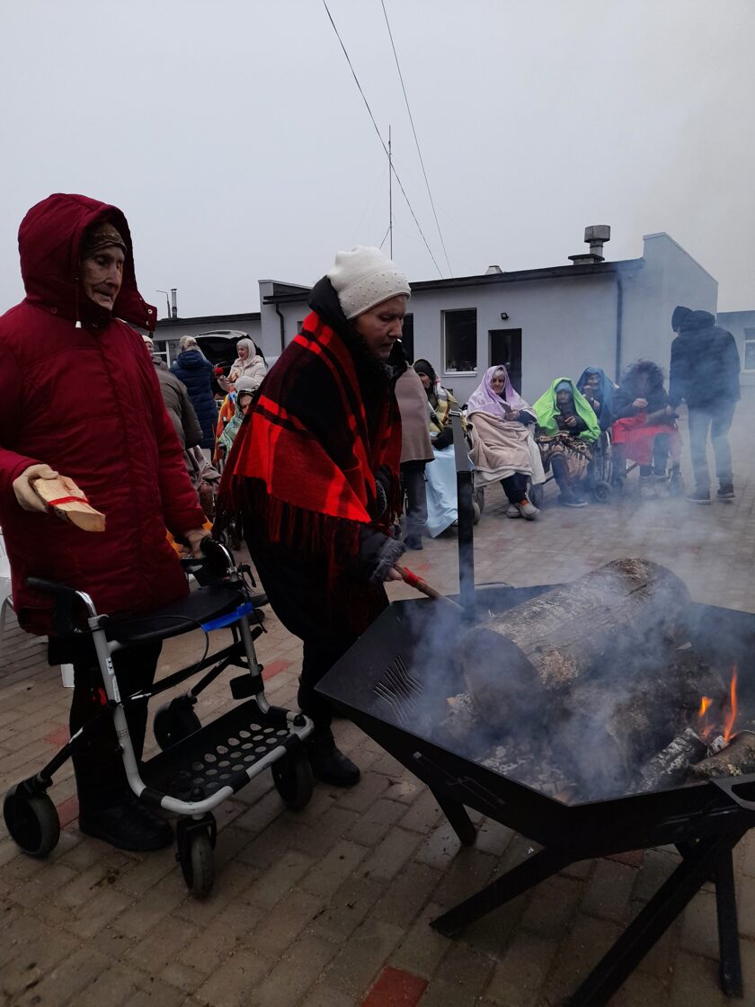Ziema - pārdomu, miera un cerību laiks. Šogad, svinot Ziemassvētkus, smēlām spēkus no mūsu senčiem. Visi kopā devāmies bluķa vilkšanas svīnīgajā gājienā, lai visi mošķi un knošķi tiktu aizbiedēti tālu, tālu prom no mūsu nama. Lai atbrīvotos no prāta mošķiem - bēdām, raizēm, aizvainojumiem, dusmām - iztinām tos ārā sarkanā dzīparā un ļāvām, lai ar dūmu mutuļiem viss sliktais aizlido tur, kur mūsu acis to vairs nespēj saskatīt. Protams, ka neizpalika ikgadējā Ziemassvētku eglītes rotāšana un sirsnīgais svētku koncerts. Arī šogad vēlamies teikt milzīgu paldies "Eņģeļu pastam" par jaukajām dāvanām, kuras sagādāja patiesu prieku visiem nama iemītniekiem! Priecīgus Ziemassvētkus!